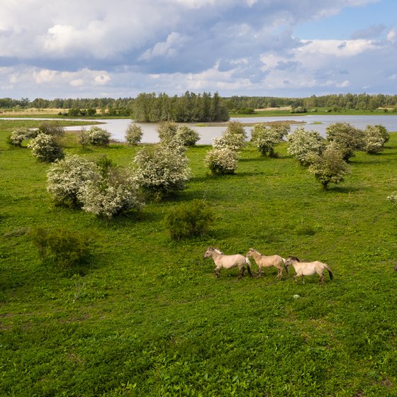 The Oostvaardersplassen is a region full of big and small lakes with reed fields and wet grasslands. The central area is not accessible to visitors, but there are plenty of opportunities to go cycling and walking around the edges to enjoy the animals and natural landscape. It is a real paradise for water and marsh birds. There are several observation huts where you can see birds up close, including common kingfishers, common and spotted greenshanks, and Cetti’s warblers.